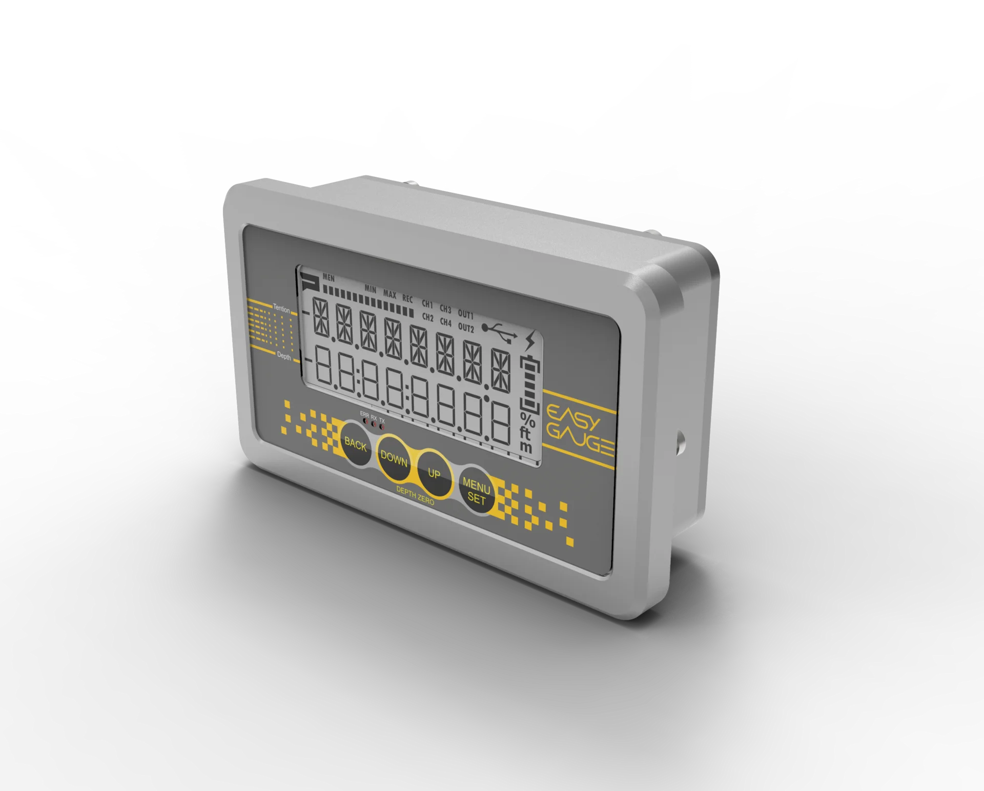 EasyGauge ist eine zuverlässige Lösung zur Messung von Tiefe, Zugkraft und Geschwindigkeit. Die erfassten Werte werden auf einem LCD-Display angezeigt und sind zusätzlich über die MODBUS-Schnittstelle abrufbar. Das Gerät verfügt über vier Ausgänge, die als ON/OFF-Steuersignale oder Alarmsignale genutzt werden können.